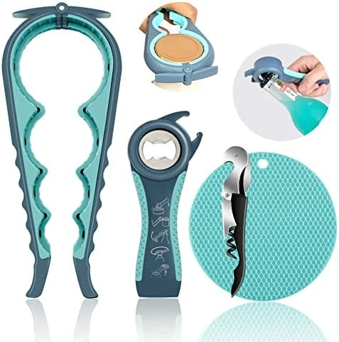 2 reviews for Hot Sale βοΈ Jar Opener For Weak Hands, Seniors With Arthritis, 5 In 1 Multi Function Bottle Opener Lid Opener For Arthritic Hands With Non Slip Rubber Jar Opener Gripper Pad And Corkscrew Wine Opener(BLUE) π€©