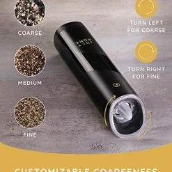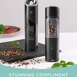 - β ILLUMINATE YOUR DINNER EXPERIENCE: Our electric salt grinder has a soft, LED light built in for your cooking convenience. This way you never have to run the risk of over-seasoning your delicious culinary masterpieces. When in operation, you’ll be pleased to find that our electric pepper and salt grinder does not exceed over 60 dB in noise, creating a cozy, romantic ambiance for two;)
