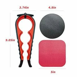 I absolutely ? cannot live without this gadget! The KAGDIDA can & jar opener are always used about every day. I have arthritic hands and I need help with anything that has a twist off cap or lid. Bottled water is at the top of my list. Along with food jars, juice bottles, soda, even my medicine. I have a liquid toilet bowl cleaner that has a child safety nozzle where you must twist first, holding and squeeze tightly between the ridges on the cap. I can’t do it.. But with this gadget,it’s a quick twist off in 3 seconds! Also, the short tips at the top of the hinged gadget opens fizzy drink cans and beer can pull-tabs without ruining my manicure.. The included round and square rubber matted disc’s are also a big help; I keep one in the car,and by my night table.The opener has 4 different sized openings with 2 ridges each, giving you 8 different sizes to accommodate cap and lid jars. Once you place the opener onto the cap where it fits,, you easily squeeze the non-slip handle together. Voila! Done! It is so easy and I keep it on my counter where everyone can grab it to use. I may just order another one just for the garage.I highly recommend it.