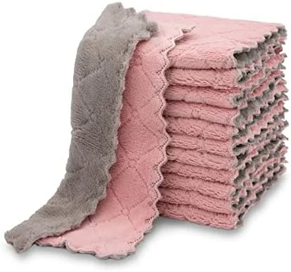 - ECO-FRIENDLY MATERIAL – Our dish rags are made of high quality non-abrasive and extra soft coral velvet thickening material, which is not easy to lint and fade, soft and not hurting hands, natural and without any chemicals. These dish cloths are not only suitable for kitchen cleaning, but also suitable for cleaning home furniture, car, window, electric appliance etc. Itβs so easy to remove dust, dirt, stain, grease, fingerprints.