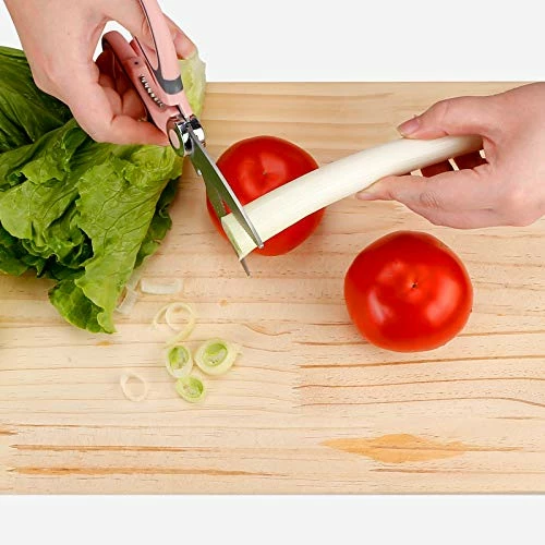 - EXTENSIVE ADDITIONAL FEATURES: The multifunctional kitchen shears can also be used as nut crackers, bottle openers and scale scrapers, or used to cut cardboard, paper and hard plastic for product packaging, trim the peduncle and so on.