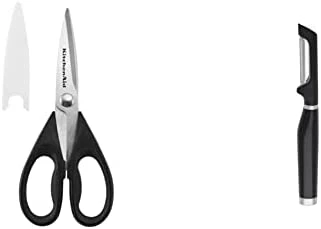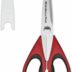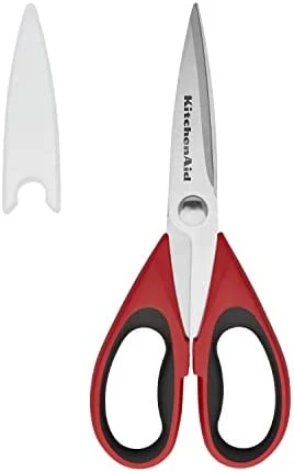 Re: KitchenAid All Purpose Shears with Protective Sheath, 8.72-Inch, Red. These are some sweet shears. They are high-quality, comfortable and sharp. They cut through plastic, cardboard, thick and thin. Use them around the shop, kitchen or garden. Comes with a protective case for the blade area that snaps on snugly.