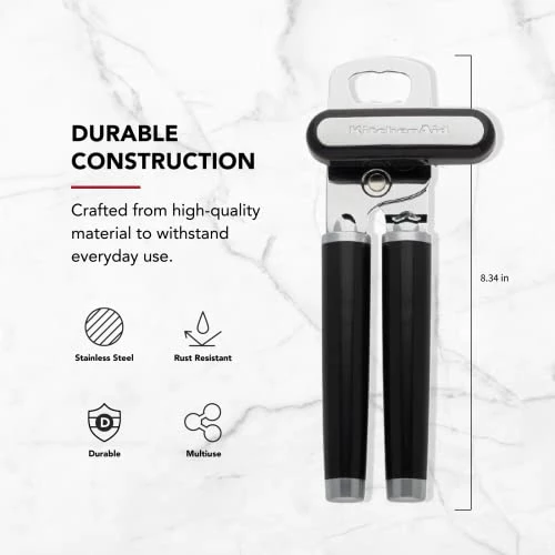 - STAINLESS STEEL BLADE: The KitchenAid can opener is made from strong 420 J2 stainless steel that is designed to easily puncture and open all types of cans and bottles