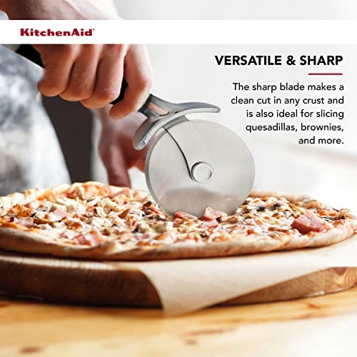 - ERGONOMIC HANDLE FOR COMFORT : The angled wheel allows optimal comfort and performance when slicing hot pizza straight out of the oven. The built-in finger guard protects your hands from both the blade and the heat. The sleek design of the handle gives it a premium feel as well. The matte ABS handle features a debossed logo, ABS chrome plated bolster, and a stainless steel endcap containing a “KitchenAid 1919” medallion, which pays tribute to the year the KitchenAid brand was founded.