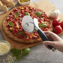 Bought this pizza wheel to replace a cheap smaller wheel that is no longer sharp. This wheel is so much better! Nice and heavy with a larger diameter wheel that slices right through the thin crust pizza I like to get. My old one only had a 2-inch wheel and this one is 3 1/2 inches so it makes quick work. It cleans up easily in soap and water (it says it’s dish washer safe, but I always clean it up by hand since I’m washing the pizza pan anyway. Nicely made unit and wish I’d bought it a lot earlier.