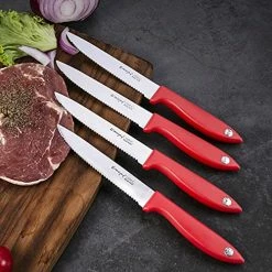 - γErgonomic HandleγComfortable ergonomic knife set handle means you can cut, or slice with confidence and without straining your hands. All knives set designed with even weight distribution for control and accuracy, letting you Chop, Slice, or Dice like a Pro!