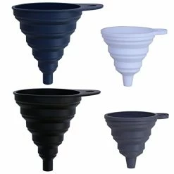 - SAVE KITCHEN ROOM: Collapsible Design, Expand to use, collapse to store the rubber funnels. You can hang on the wall or put away in a drawer. All 4 Silicone Folding Funnel take up less room then 1 regular.