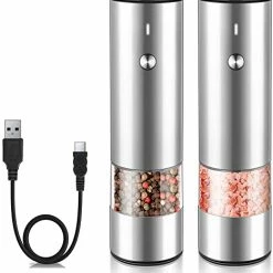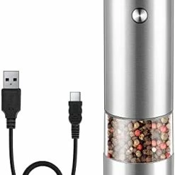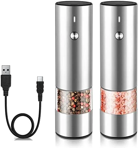 - ? High Quality Materials — Our electric salt and pepper grinder set rechargeable are made of the highest quality stainless steel with improved construction and a ceramic core to ensure smooth and easy grinding with just the push of a button.