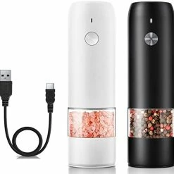 I bought this item due to the onset of rheumatoid arthritis that has affected my fingers, hands, and wrists. The item works exactly as described, grinding peppercorns just right. No one ever said you have to put salt in the white grinder – I use it for white peppercorns. The only drawback is that they need to be recharged after each use, not because the batteries are depleted, but rather to have it at full power for the next use. Better batteries would have been nice. They also start losing charge with time, so an occasional recharge is needed if they aren’t used a few times per week. Excellent product. Three stars on durability because I’ve only had the product for two weeks.