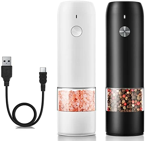 Never again do I have to grind my salt and pepper. These hand held salt and pepper grinders are a home cooks MUST HAVE. Easy to fill, easy to use, and rechargeable. They come with a spotlight so you can see where your aiming your seasoning, and you can adjust the grind from fine to course.Absolutely reasonable price.Let me reiterate that this is a home cooks must-have, and quit exhausting that forearm!