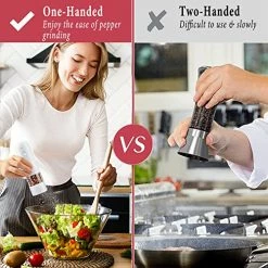 - ? One-Handed Operation — This one handed electric grinder are ideal for cooks with limited hand or arm strength and cooks who need to keep stirring or tossing as they add their pepper with one hand. you will enjoy the ease of pepper grinding with this amazing mill.