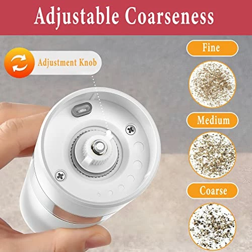 - ? AMAZING GIFT — The modern electric salt grinder set is the best housewarming present! A Thoughtful GIFT for mom, grandpa, grandma, seniors, your chef friend or someone with arthritis or limited grip-strength. Every day when they use the grinder to season food they will think of you immediately ! What a great connection of love, kinship and friendship! Perfect Special Heart Felt Gift for Christmas, Anniversary, Father’s & Mother’s Day, Birthday, New Year.