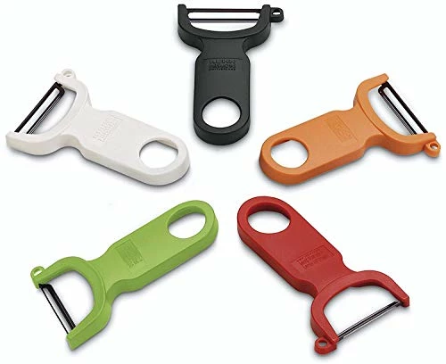 These are the standard in many a professional kitchen for a reason. They’re sharp, comfortable enough to peel a 50 pound sack of potatoes, and compact enough for a drawer with a big ole hole for a tool rack peg. The blade takes off thin layers, so you’re not wasting the product (but thick enough that the potato peels can go in a fryer and be oh so tasty).I’m not a huge fan of the translucent oval ones, the opaque rounded rectangle handle seems more sturdy and feels better in my hands, but I have quite large ones. If you don’t like whatever handle you got, try the other style, I’m sure they make both for a reason.Caveat: It is a high carbon blade that needs care. It WILL rust on you if you don’t take care of it, same as a real wok or a cast iron pan. Wash or rinse off immediately after use, and thoroughly shake or towel dry after and this peeler will take care of you for years with no fuss.