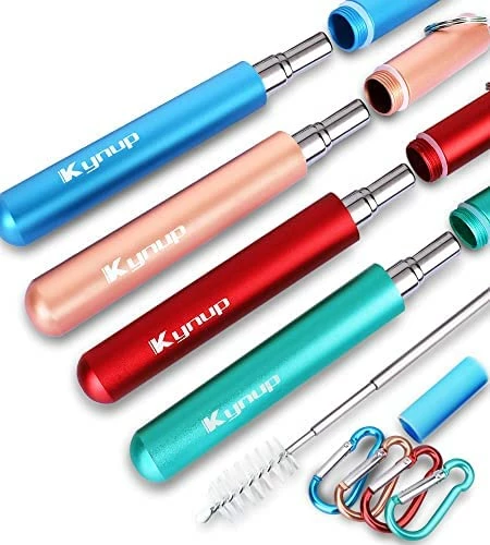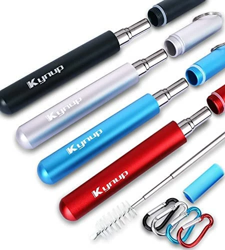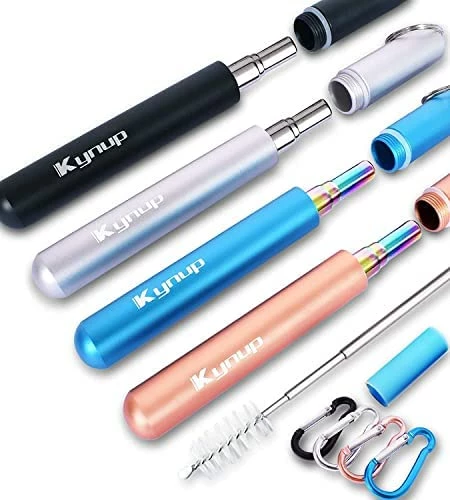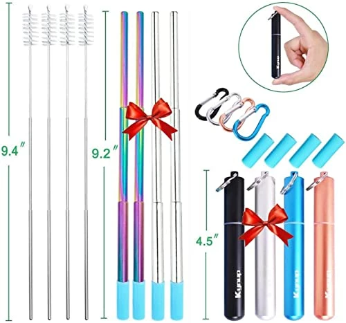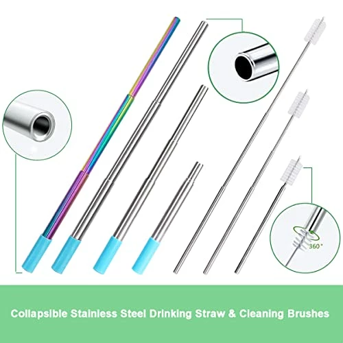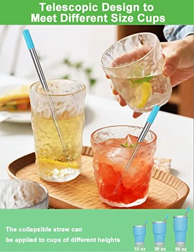 - γWide Applicationγ Every portable metal straws with three sections that can be stretched to 9.05 inches. perfectly compatible with all types of cups or tumblers. And every reusable straw is with 1 stainless steel cleaning brush which is long enough to wash the whole straw.