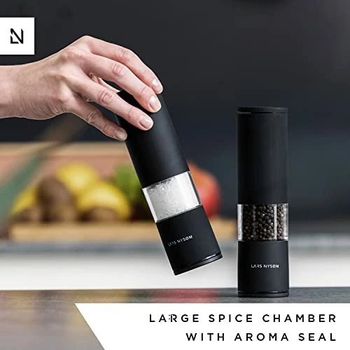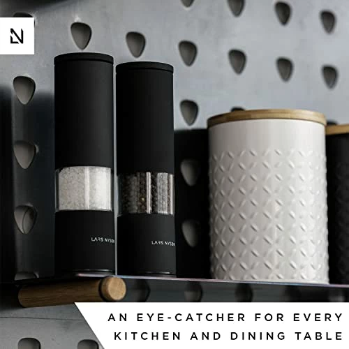 - β DESIGN SPICE MILL SET (2 pieces): The salt and pepper mill set by LARS NYSΓM impresses with functionality and design. Perfect for everything that adds spice to life – whether pepper, salt, chili or other herbs.