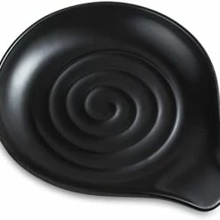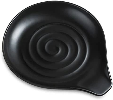 - The large round shape ensures that the spoon rest will remain stable during use and features a centered circular depression that accommodates a wide variety of utensils.