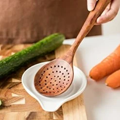 I had another spoon rest that would fall over every time I put a heavy spoon or ladle on it. The fact that this is wide and flat makes it perfect for any size spoon.