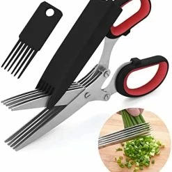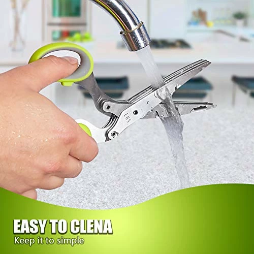 - βοΈγEasy to Cleanγ- Dishwasher Safe. This 5-blade scissors very easy to clean. To wash the kitchen herb scissors, just swipe with the cleaning cover to the end of the blades, rinse the blades, or put them in your dishwasher and get ready for next use.