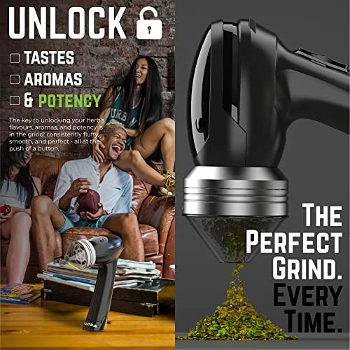 - ? A PINCH OF HERB: No matter how dense or oily, dispense your favorite herb product 8X faster than hand grinding. Gently ground but not mulched by 6V battery-powered sharp teeth. With a 50mm metal head that holds up to 1g and its simple one-handed use β get blasted into herb preparation!
