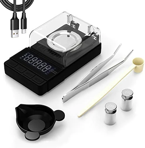 - Mini pocket scal comes with 2 different size powder pans, stainless steel tweezer, 1 science-grade measuring spoons for loading powders and bulk supplements.