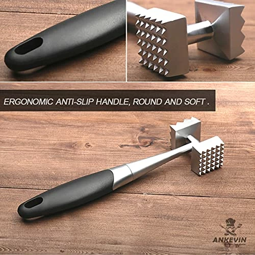 - 【Ergonomic Design】Our meat hammer with a soft rubber handle gives you an excellent grip. Large hammer head with a balanced design that allows the mallet and gravity to do all the work in less time. Easy on your hand & arm.