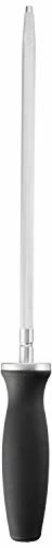 A number of years ago, I purchased high quality Henckels cutlery set, which came with a sharpening steel. The knives are awesome, the steel not so much. Yes, it did sharpen the knives, but it wasn’t long until the steel rod started coming out of the plastic handle. I tried several times using different adhesives to get the steel rod stay in the handle. It would work for a while, but eventually the steel rod would start falling out of the handle again. This made the sharpening steel pretty much unusable. So I purchased this sharpening steel as a replacement. I’ve used it several times now and it sharpens our knives better and with less strokes than the original Henckels steel and best of all, the steel rod is staying in the handle. Great product and sharpens very well!