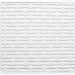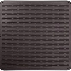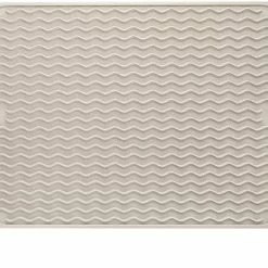 In my smallish apartment kitchen, the electric cooktop is also a dish-draining area. This mat doesn’t roll up real tightly but, Eureeka, I can just set it on the top of my range’s control panel/”backsplash” with its open side slightly dropping down behind the panel (doesn’t need to fit tightly) and it stays there beautifully. Plus the grey color I bought just blends perfectly with the stainless steel on my range and doesn’t jump out against the backsplash tiles I have.