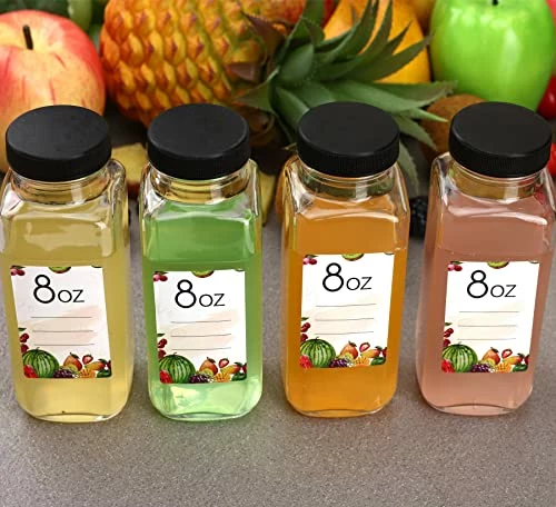 - 【Various Liquids Storage Container】 Leak-proof bottle lids prevent carbonation and fermentation by creating an airtight barrier. These wide mouth 8 OZ juicing bottles, similar to mason jars, are ideal for a variety of prepared beverages, such as juice, boba, smoothie, milk, milkshakes, tea, water, beer, oil, kombucha, etc. They look lovely when together on a table or in the refrigerator as well.