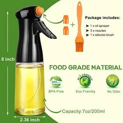 - Multi-Purpose Oil Sprayer – The oil spray bottle is suitable for cooking oil, lemon juice, soy sauce, etc. Practical kitchen gadget helps you achieve a fan pattern atomized spraying. It is widely used in grilling, salads and baking. Oil sprayers for cooking are popular with chefs, gourmets, and perfect air fryer accessories for fitness enthusiasts.