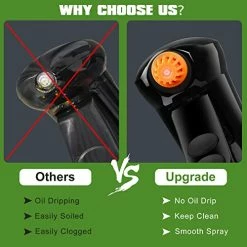 - Upgraded Replaceable Nozzle – Upgraded nozzle help you get 100% even atomization while keeping the nozzles clean and free of oil dripping from the nozzles. Also, the nozzle can be rotated, and you can turn the nozzle to adjust the angle of the spray and control the pressure to change the spray pattern.