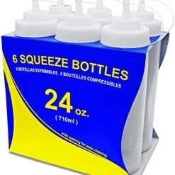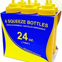 I bought this 6 pack for barbeque sauce for individual tables. The plastic is super thin so we will see how they hold up. They are tall 9″ cylinders and fit into the refrigerator doors easily. They clean up around the top and the nice part is the ring for the closer is separate from the top. You can choose to use or not.