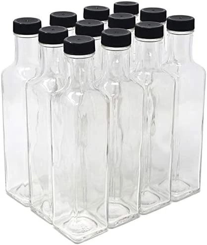 - Case of 12 Beautiful, Clear Glass Square Bottles