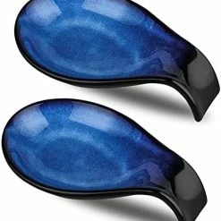 - γELEGANT DESIGNγTwo-tone color ladle holder with high quality full blue color covered is being able to blend into any home decor.This modern utensil rest won’t scrach your kitchen counter and stove top,help keeping your kitchen clean and tidy, protecting surfaces from stains or hot utensils.