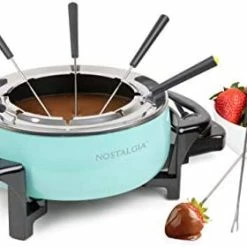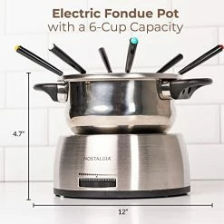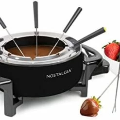 DESCRIPTION ADDITIONAL Bring guests together in a fun and stylish way to serve hors d’oeuvres, entrΓ©es and desserts. Make delectable cheese dips for bits of bread and fruit or try decadent chocolate dessert fondues. Creatively and communally cook morsels of meat and seafood in a variety of oils and broths. The color coded forks make it easy for guests to serve themselves. The unit features an adjustable temperature control, 6 color-coded fondue forks and support ring. 6-CUP CAPACITY – Make up to 1.5 quarts (3 pounds!) of your favorite fondue for birthdays, pool parties or any special event to share with friends and family. FONDUE PARTY – Make any get together special! Dip fruit, vegetables, breads, pretzels, chicken wings, ribs, and more into a variety of fondue sauces. Try buffalo sauce, barbecue sauce, ranch, chocolate, cheese, dipping broths and more! TEMPERATURE CONTROL – Keep fondues at the ideal temperature by adjusting the blue-lit temperature control dial. COOL-TOUCH HANDLES – Use the cool-touch side handles for safe and easy handling while moving the removable pot . 6 COLOR-CODED FORKS – Allow guests to serve themselves decadent chocolate fondue, delectable cheese dips and more with the included 6 color-coded forks. Notches in the rim hold each fork in place. DURABLE CONSTRUCTION – High quality stainless steel construction makes this a sleek and durable tabletop unit fit for any party centerpiece. Detachable parts are dishwasher safe for easy cleaning. Model Number: FPS200 Product UPC: 082677217103 Product Dimensions: 6.75 in x 7.75 in x 10.5 in Product Weight: 2.75 California Residents: PROP65
