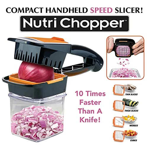 Not as easy to press and chop. Definitely will not take a whole onion. It works well if you use sections of an onion but definitely not a whole bunch of sections. would have to be a Superman in order to press a lot of sections. has potential to be a good product if it was a little bigger and easier to press.