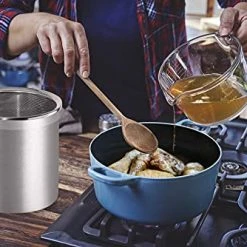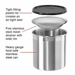 - STURDY CONSTRUCTION – This oil strainer and container is made from robust stainless steel.