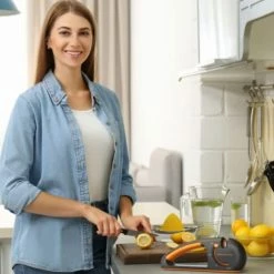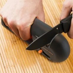 - ? EaseΒ toΒ Use: Whether youβre right or left-handed, the ergonomic handle allows you to restore your cooking knives in a matter of seconds! Simply place the blade in each of the slots and gently pull the knife through a few times for fast, effective sharpening.