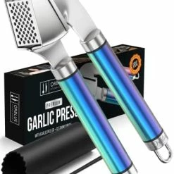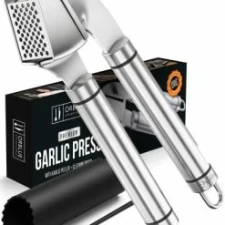 - EASY TO CLEAN: The garlic press with roller is a breeze to clean. Just place in the dishwasher machine or run through water. Clean up could not be any easier. Plus, you can count on the Orblue Stainless Steel Garlic Press or your money back! Click ‘Add to Cart’ now and enjoy our no-questions-asked, 100% satisfaction guarantee!