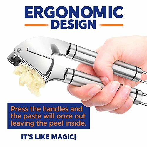 - HEAVY DUTY CONSTRUCTION: The heavy duty construction and ergonomic design, ensure you can easily mince unpeeled garlic cloves or peeled ginger root quickly and with minimal effort. Simply press the handles and delicious paste will ooze out, leaving the peel inside. It’s like magic!