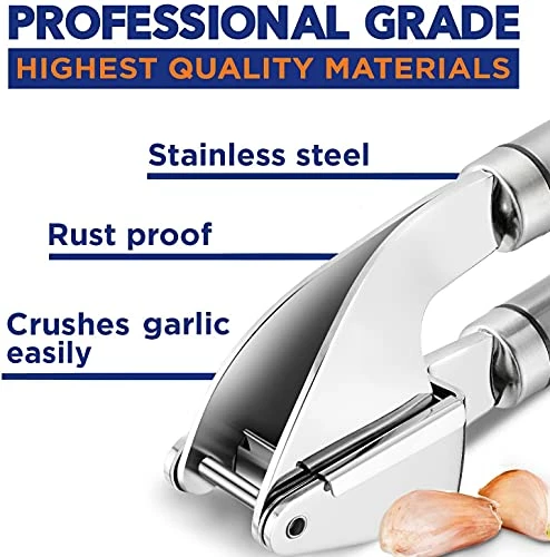 - PROFESSIONAL GRADE GARLIC PRESS: Stainless steel, rust proof garlic press can mince and crush garlic with restaurant quality and ease. This will be the best tool in your kitchen.