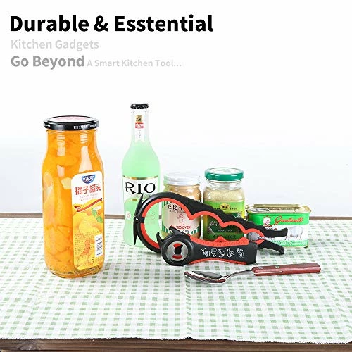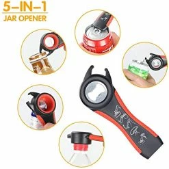 - 5-IN-1 BOTTLE OPENER: Popular handy device for safe opening cans with ring – Release vacuum on jar lids – Open any can, jar or bottle with minimum efforts. This tool is great for opening those water bottles that have short tops that are hard to grip.