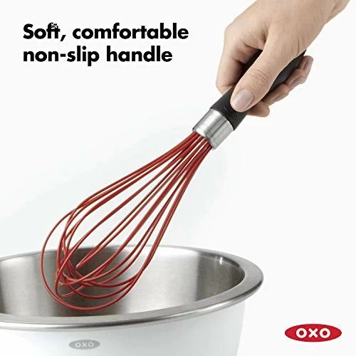 This balloon whisk deserves 5-stars.The problem with many silicon whisks is that the silicon material used to make the whisking wires is too soft, too flexible, and gives too much such that the whisking effectiveness is substantially reduced. This problem is especially prominent when whisking a thicker batter. It’d be like swimming through molasses.This Oxo silicone whisk does not have the same problem — or I should say, the least amount of give (flex) compared to other brands. And it only gives slightly when compared to the Oxo Balloon WIRE whisk made out of stainless steel.Why do you want to get a silicon whisk, you ask? For two primary reasons: 1) safer on your teflon or ceramic coated pots, pans, and dishes. And 2) food sticks to silicon wire slightly less than stainless.For most people #2 reason above is not apparent or perhaps not that important, and people are generally correct. However, if you’d observe side by side (take two balloon whisks one made of stainless and one silicone) and whisk up crepe batter, you will find the batter drip off the silicone whisk ever so faster, quicker, cleaner than the comparison stainless whisk. Won’t make or break the batter or make or break the recipe, but hey, it’s an observable fact and it may be important to some and totally irrelevant to others.As for reason #1 above, yes, you have to own a good silicone whisk if you own teflon or ceramic coated cookware. I think the reason is pretty self explanatory. You just don’t take metal to teflon.Well, like I said, the silicone material used here is pretty sturdy. It is very comparable (in terms of results and whisking power) to the stainless variant. I’d have to whisk a bit stronger to compensate for the softer material but, again, not significantly so that I’d complaint. Whereas the other products on the market I’d say “nahh, tooo soft.. too difficult to whisk up!”This whisk is dishwasher safe. The huzzle is stainless, and the grip is comfortable, nonslip. and smooth.5 Stars given because the product delivered: 1) Function 2) Durability 3) Ease of use and clean 4) Balance of function & elegance and 5) Total, Overall balance of everything mentioned above against the price you pay.For the price you pay, this is a good whisk.