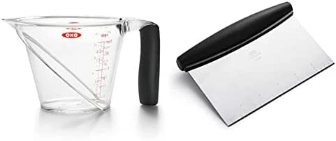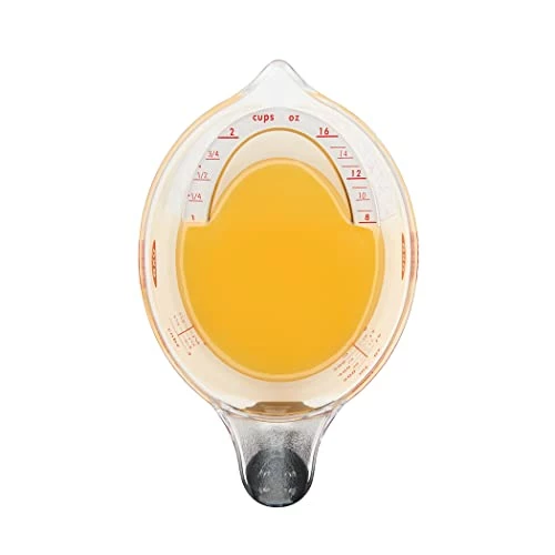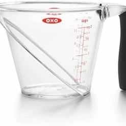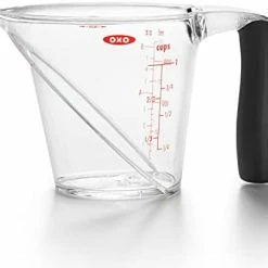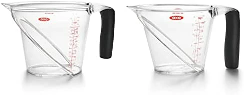 Because I know the brand has been around for years I’m almost embarrassed to say I’m new to the OXO line, but so glad to have finally discovered it. I haven’t bothered to price compare when purchasing their items. Not because I can afford not to, far from it…but because the utensils they sell make cooking so effortless that whatever the cost is it’s worth it.I wouldn’t imagine there’d be such a difference when it comes to a simple measuring cup and I told myself I’d never again purchase another plastic one because I’ve had issues with other brands.I buy those 2.5 gallons of water with the spouts on the front of the container and keep them in the fridge and that’s the water I use for cooking. Everytime I need to measure water for a recipe it involves using the container’s spout to put water in the cup, setting the cup upright on the counter, waiting until it settles in the cup so I can see how much more I need, then repeating.I’d seen these measuring cups in the past but couldn’t imagine the use for being able to measure while at a slant or how it might work. Then one day while trying to measure water from the fridge I thought about how this cup might come in handy if I could figure out how to use it. I finally decided to go for it and found this one here on Amazon but couldn’t find it in glass. Then it occurred to me how heavy a quality 2 cup glass measuring cup is and I decided it might be a bit much for me to handle so I made the decision to try another plastic one since I was going with a quality brand.As soon as I unboxed this I immediately noticed how balanced it felt in my hand and the first time using it I wasn’t disappointed. I quickly caught on to measuring at a slant and noticed that unlike the lesser quality brands where I have to give the water time to settle before being able to get an accurate measurement, the liquid in this cup settles almost immediately once it’s set on the counter. Something about the balance of this cup makes liquid settle quickly. Just as with every other OXO product I’ve purchased this has made cooking a dream.Once again, way to go OXO and once again ?? and a ?!