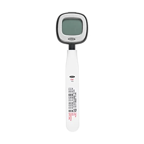 As a professional cook, I broke the on/off button within 2 weeks of use. Whoops. The case on it has some great temperature guidelines which I love. The on/off button I mentioned is right on top of the whole thing and I must have subjected it to rigorous stress because it became stuck after a short while. Completely my fault for working too hard. Great thermometer though, usually reads in about 7-10 seconds.