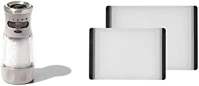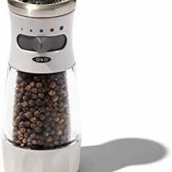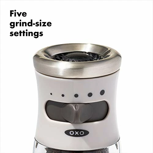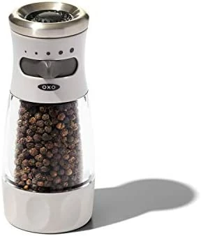 Pepper grinder is easy to fill and use. Love that you have to flip it over to grind so that you donβt end up with a bunch of ground pepper on the stove or counter when you turn it back over. Also love that you can see how much is left and thus know when to refill. It seems well-made (itβs an OXO brand) and should last a while.