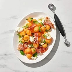 Easily scoops out melon balls and zucchini innards for zucchini boats, and is very comfortable to hold.