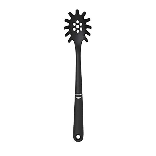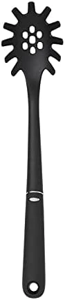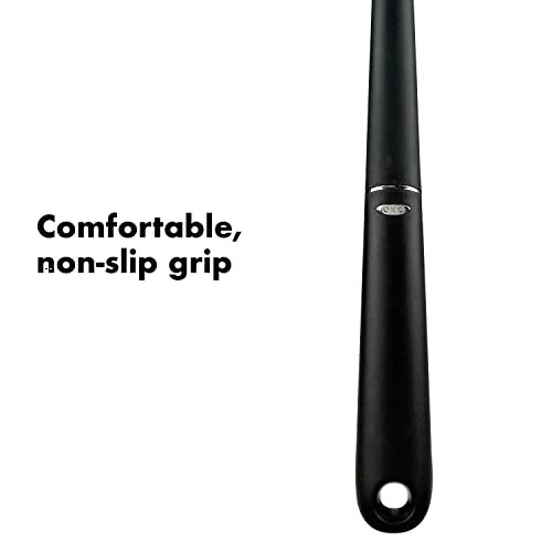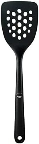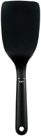 I love this spatula! I make pancakes frequently. I bought another seller’s large silicone turner primarily for pancakes. It turns out that the pancakes stick to the silicone causing many edible, but not presentable, ones. The OXO spatula does not stick and I can now make more presentable pancakes. It’s large enough for the 5″ pancakes I make. The only weakness is that nylon turners are not as high temperature tolerant as silicone ones, something like 600 degrees versus 400 degrees. Being careful you shouldn’t have a problem.