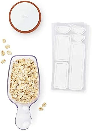 - Recommended for use with the 4. 4 qt/4. 2 L OXO pop container, sized for 5 lb Bags of flour or sugar; also fits all pop containers with lid type a, b and D