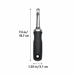 OXO simply makes products that work well and that feel comfortable in the hand when using them. This peeler is no exception. Makes quick work of any peelable fruit or vegetable with its sharp blade. The peeler has a good heft to it without being too heavy, and the rubber material used for the handle is very comfortable. Great value and highly recommend it.
