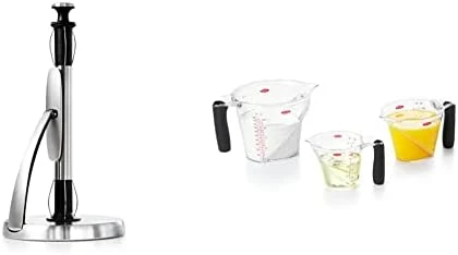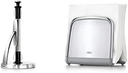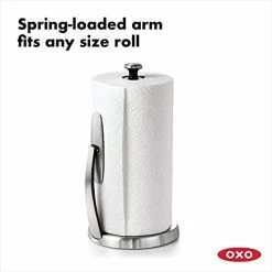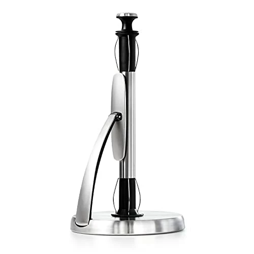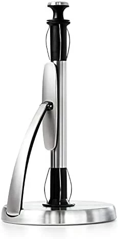 i was looking for one to replace the simplyhumanthat brand is great too but the one they ship me was missing a support gripthis OXO though is very very goodsolid piece that stays put and you can pull papertowels from it for miles and mileswithout it messing upyou may have to reset it every now and then if you are aggressive towel puller like me but i really do love this paper towel holder its sleek and you wont even notice the ugly BUT Functional metalic grips on the shaftand placing and removing paper towel is very very easy literally the same as any other oneyou dont have to unscrew any top or bs like that just put it straight on and boom its good to go